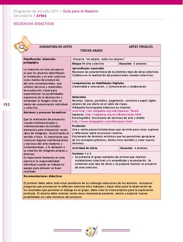 Programas de estudio 2011 / Guía para el Maestro Secundaria / Artes SECUENCIAS DIDÁCTICAS