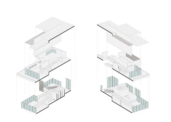 Se conformaron niveles superiores en la rejilla de los 9 cuadrados a diferentes niveles, esto con el objetivo de generar elementos que resaltaran en el diseño arquitectónico, ya sea por su materialidad, por un ritmo en fachada o por el tamaño del mismo, hecho jerarquizara a un elemento.