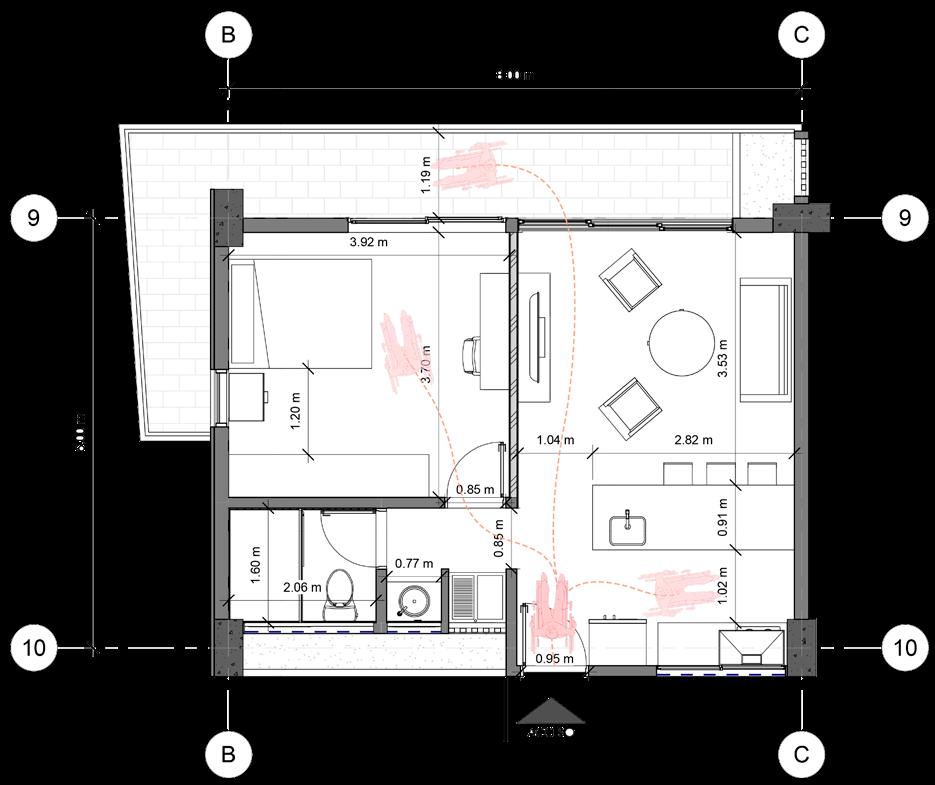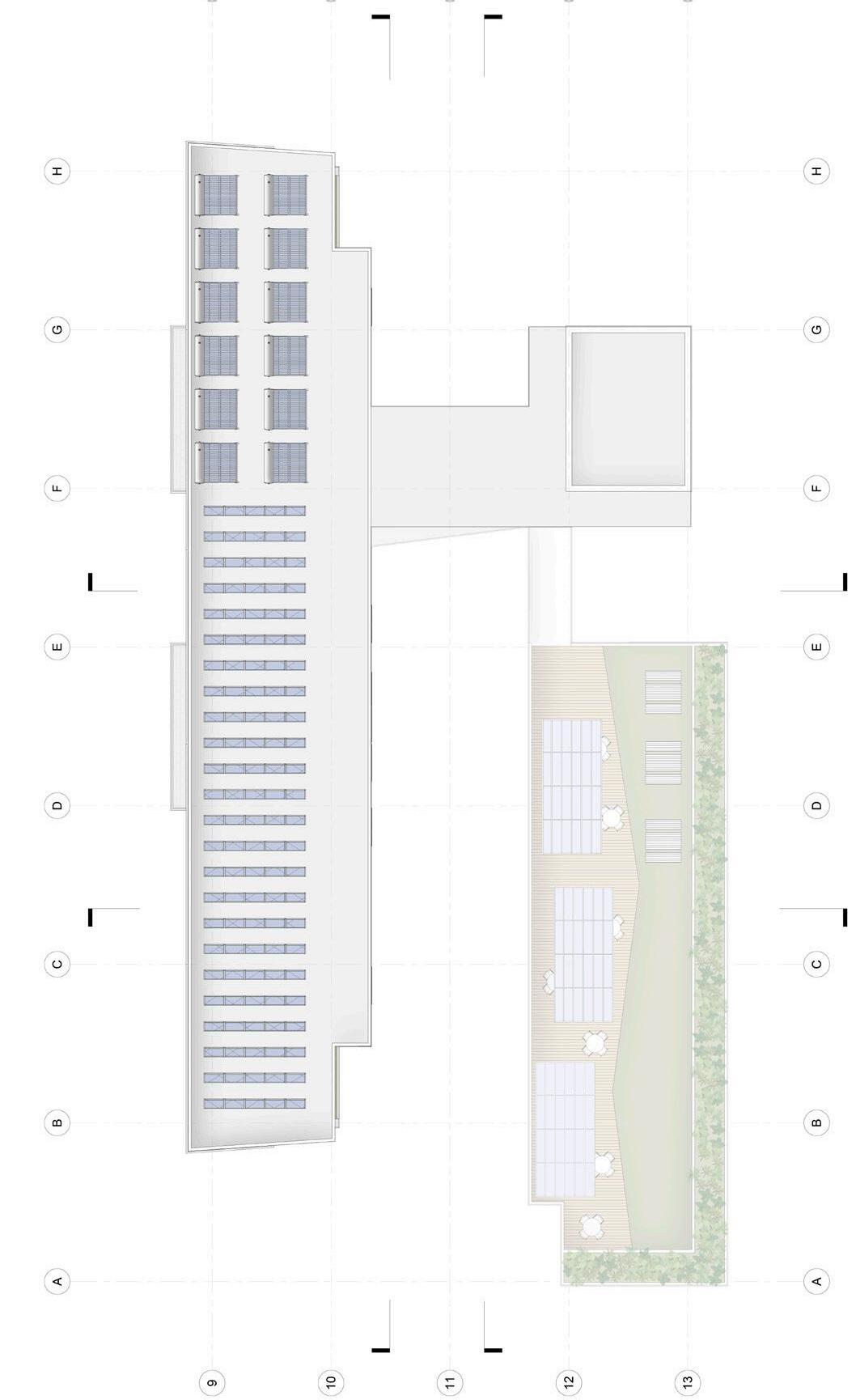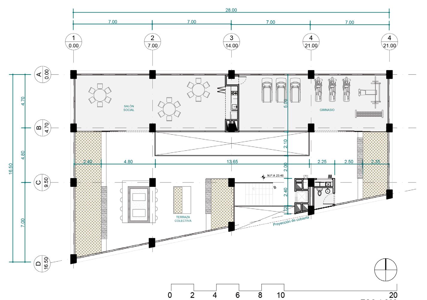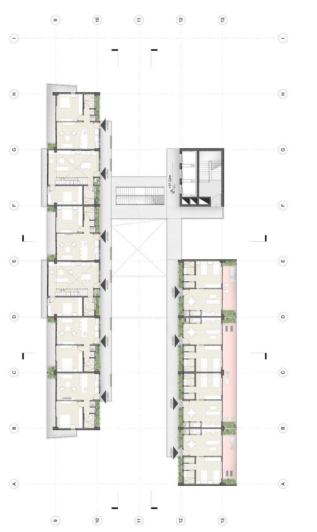 Es así cómo se constituye una plataforma de servicios en la cual se ubica un centro de alto rendimiento deportivo con dos torres de vivienda social fija y temporal, donde los corredores abiertos buscan mejorar el confort al interior de los apartamentos al garantizar condiciones tales como ventilación cruzada, iluminación natural, privacidad y posibilidad de encuentro e interelación vecinal.