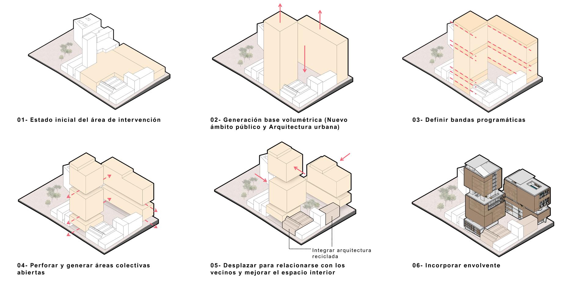 La propuesta parte de la reactivación barrial a través de la generación de nuevas conexiones urbanas con el fin de generar un nuevo ámbito de lo público: lo colectivo como mediador hacia el espacio íntimo.
