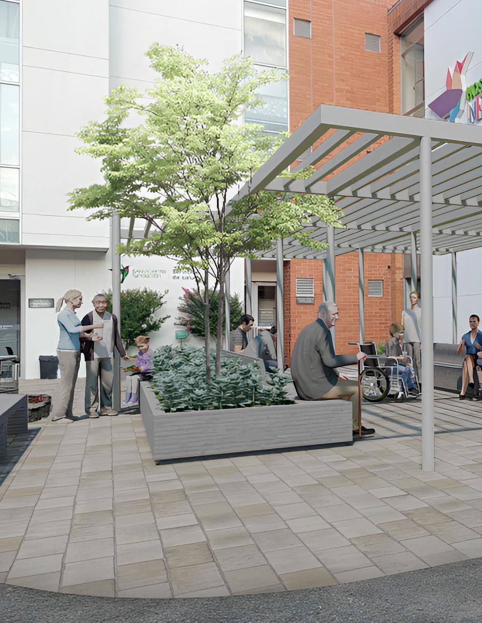 De este modo, se desarrolla una propuesta de diseño urbano en múltiples espacios del Hospital que sirven como puntos de encuentro para los pacientes y acompañantes, pero que hoy carencen de calidad espacial; buscando favorecer la sensación de bienestar, humanizar el espacio y brindar la mejor experiencia a aquellos que visitan el Hospital San Vicente cada día.