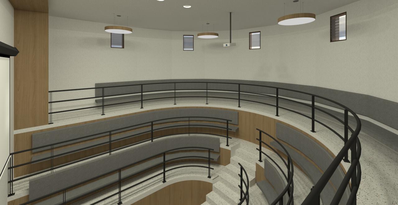 Con el fin de aprovechar de mejor manera el espacio de la Sala de Autopsias en el Bloque 13, el cual se encuentra subutilizado actualmente; se propone partir de la gradería ya existente en el espacio y proponer la creación de una sala de conferencias o pequeño auditorio con capacidad para 62 personas.
