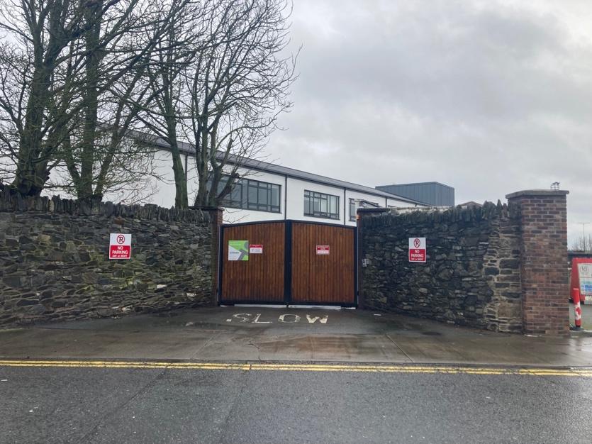 What significantly worsens the situation, is the school entrance for cars. There’s a dedicated pedestrian gate with a barrier in front, close to the traffic lights but further up a gated entrance for cars is also used by students. Some stand by the wall, awaiting collection by car on the Ardee Road itself; some cross the road to the Iarnrod Eireann sliproad for collection there. Motorists enter and leave through these gates