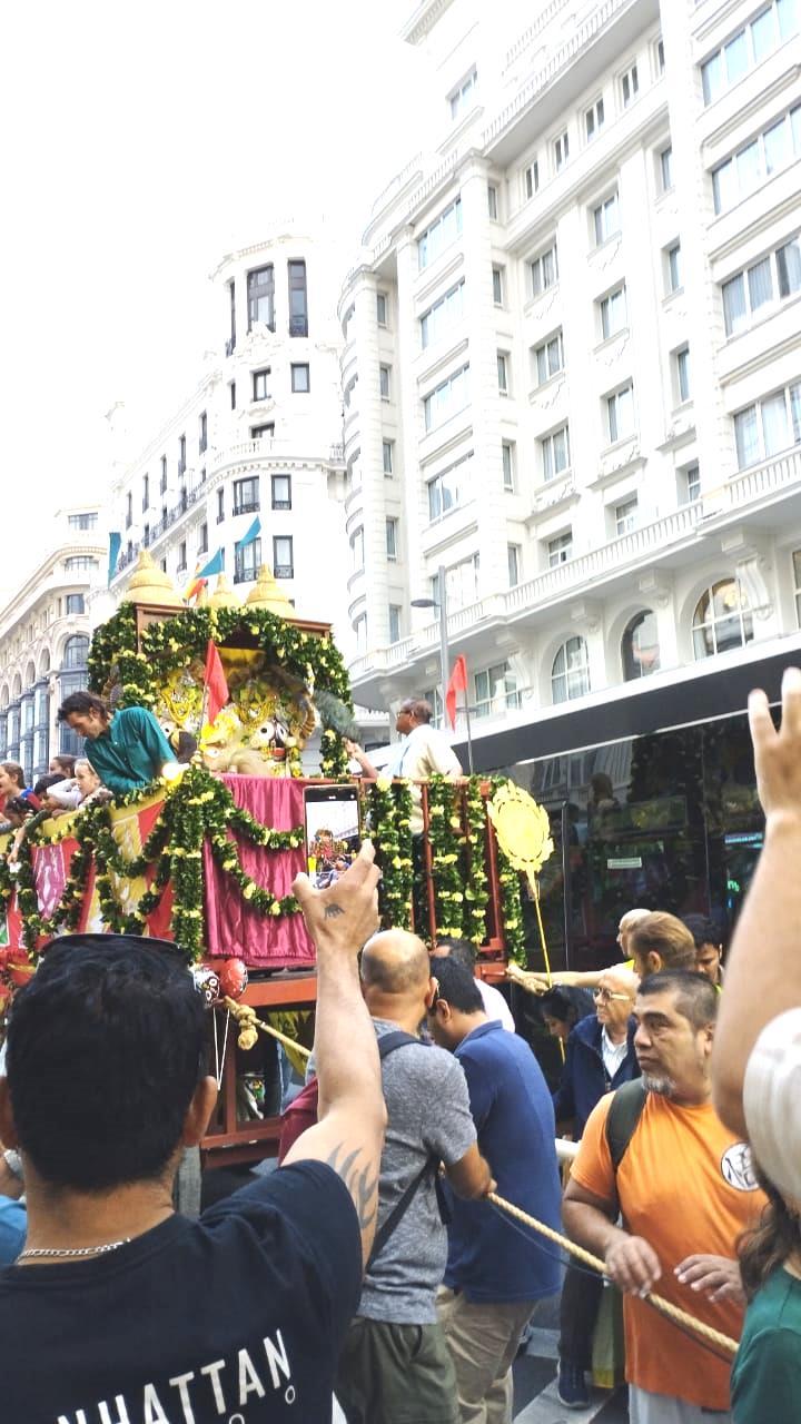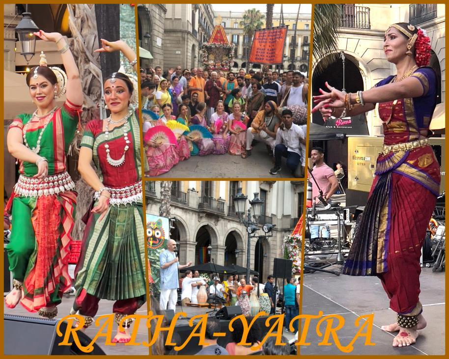 Llegó uno de los Festivales más esperados por muchos devotos y simpatizantes. En Barcelona ya es la edición 31 de este hermoso festival. Otro año en el que hemos podido pasear a las deidades por las calles de nuestra ciudad con un hermoso desfile en el que los devotos y amigos del Templo acompañamos a las deidades en un paseo para ser vistas y disfrutadas por todo el mundo. Las calles del centro, principalmente Las Ramblas, están levantadas por obras, lo que nos hizo realizar el trayecto por otras calles más pequeñas, pero por el centro del Barrio Gótico, lo que hizo que fuera una procesión más íntima, pero muy hermosa.