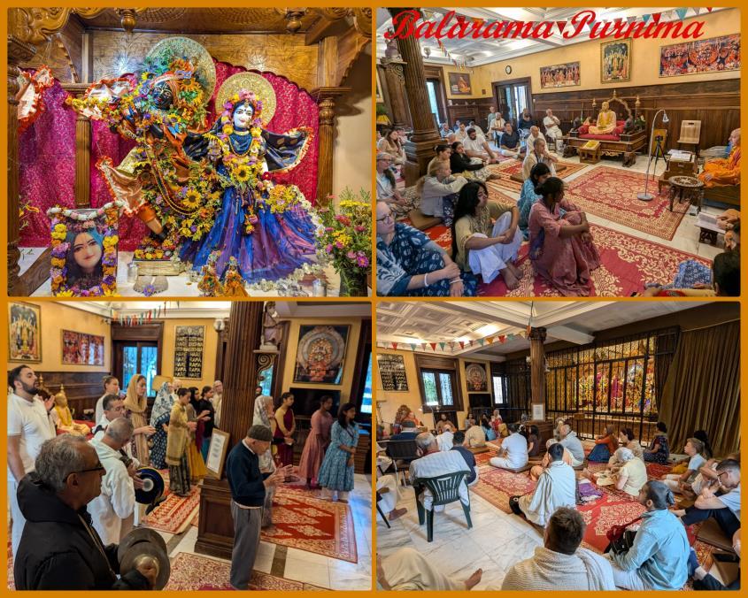 Realizamos un programa por la tarde para poder celebrar el advenimiento de la primera expansión personal de Krishna, el Señor Balarama. En él recordamos algunos de Sus pasatiempos y también rendirle adoración, así que tuvimos bhajans, una charla y el arati y kirtan