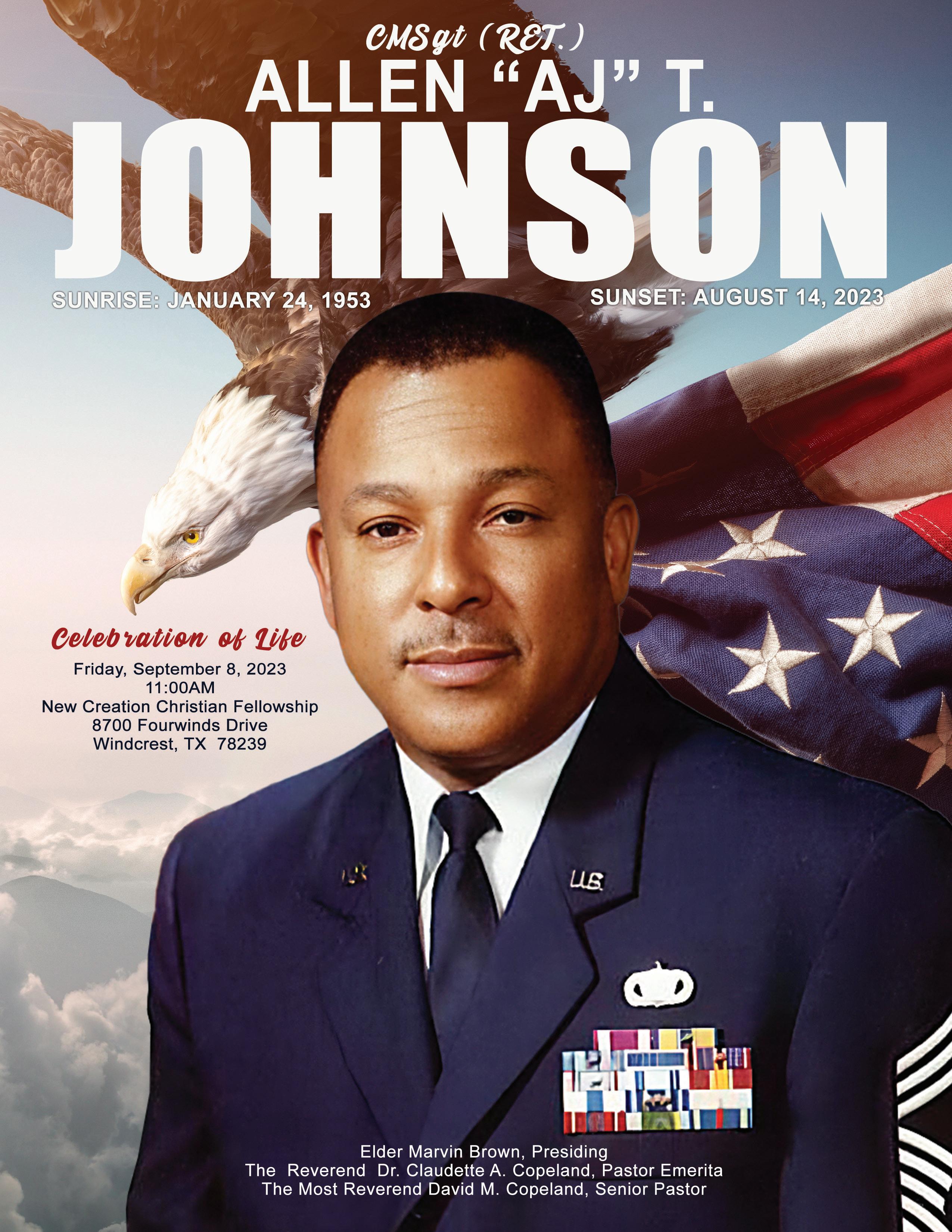 Allen T. Johnson, affectionately known to family and friends as “AJ” or “Al,” was the fifth child born to Mr. James Welton Johnson, Sr. and Ms. Mamie Louise Wilson on January 24, 1953, in San Antonio, Texas. His parents and two siblings, Mary Louise and Marion Kay, preceded him in death.