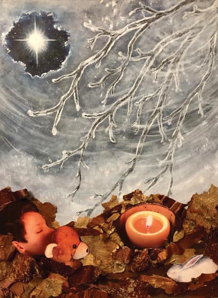 provoking, ranges from watercolors to acrylic and oil paintings, photographs and mixed media collages, sculptures, assemblages, archival ink, digital art, handmade books and a film.