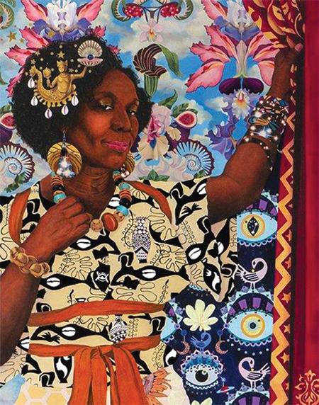 Detail from Gerardo Castro’s oil painting: “Mayra Santos-Febres Clothed with Strength and Dignity”