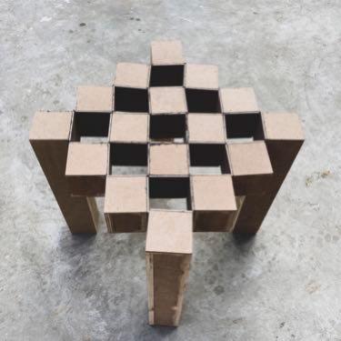Inspired by how perfectly shaped pieces complete a puzzle, this furniture collapses onto itself to fill in the self created cube void spaces and complete the missing picture.