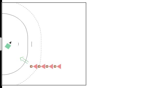 En opsætning, der kan give spillerne mange gentagelser af den vigtige håndboldrytme med tre skridt før aflevering eller skud