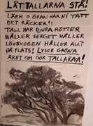 DE STORA GAMLA friska lärkträden är nedhuggna! Oförlåtligt. Men tallarna håller mina tårar. De ger kraft och kontrast till lövträden. Länsstyrelsen vill även hugga bort tallarna på sikt har jag hört. Det vore verkligen synd. Det får inte ske. Dom måste ändra sig och bli kloka! Tips; läs Rolf Edberg igen!