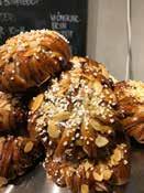 finhackad rödlök, varmrökt lax med rivet syrligt äpple och hovmästarsås, vaniljglass med lönnsirap och färska blåbär, drottningsylt och grädde, nutella med banan och grädde, äppelmos och kanel.