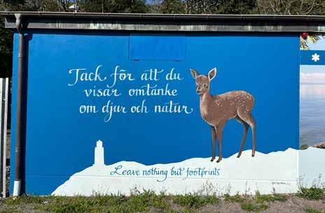 möter besökare vid parkeringen. Verket är enligt uppgift skapat av konstnären Sara N Bergman som bland mycket annat illustrerar barnböcker. Hon är bosatt i gamla missionshuset i Brunnby med sin familj. g Målning