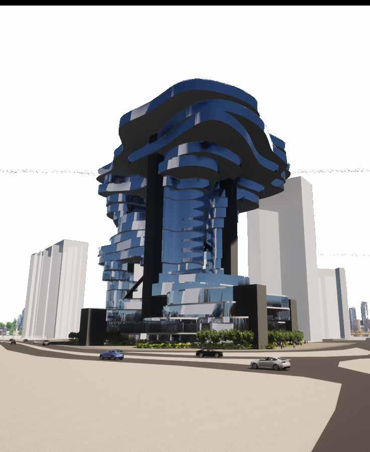Through the techtonic movement of tubes based on Oblique Swivel Joint mechanism, the Enterprise is a Vertical C.B.D., catering to the conext which is Gold Course Road, the most prime location of Gurgaon, by providing the essential Business District Hub for the City, along with Recreatinal and Hospitality typologies, interlaced in a hybrid functional manner.