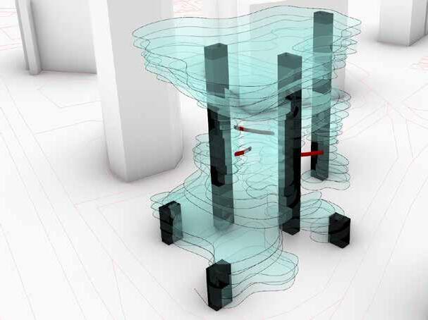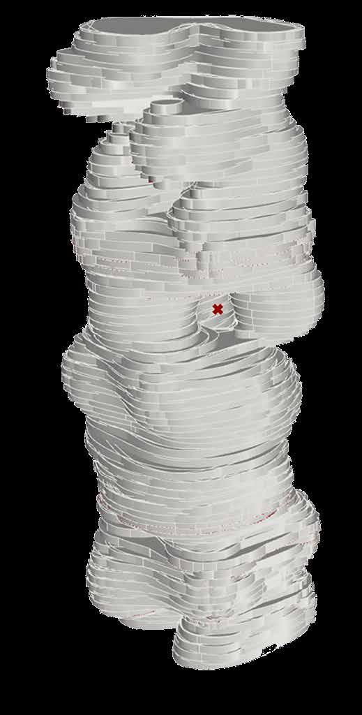 The following Tower was the result of PopGeo, which populates geometry over a given volume. These points were further made into 2D isocurves and extruded to form individual floor plates.