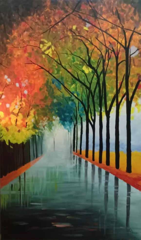 Acrylic on Canvas, Knife Far Away in Autumn 3’x5’