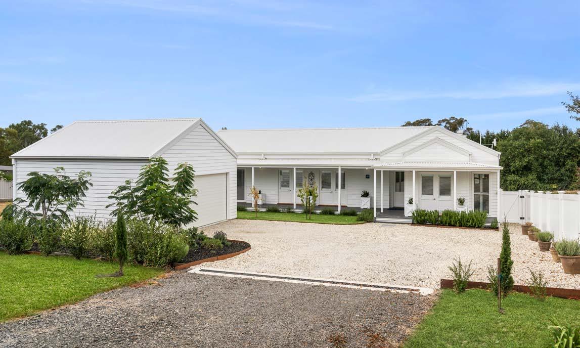 Set against a peaceful rural backdrop is a striking modern country home by Russell Parsons, blending luxury craftsmanship with relaxed country living. Just four years old and under builder’s warranty, the residence sits on a generous 4070sqm allotment. The pristine white façade commands attention, while inside the home is filled with natural light, high-end finishes, European oak floors, plantation shutters, wool carpets, and double glazing throughout.
