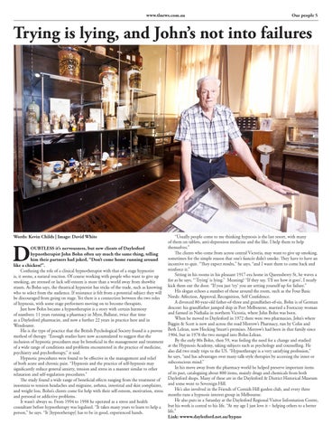 OUBTLESS it’s nervousness, but new clients of Daylesford hypnotherapist John Bohn often say much the same thing, telling him their partners had joked, “Don’t come home running around like a chicken!”.