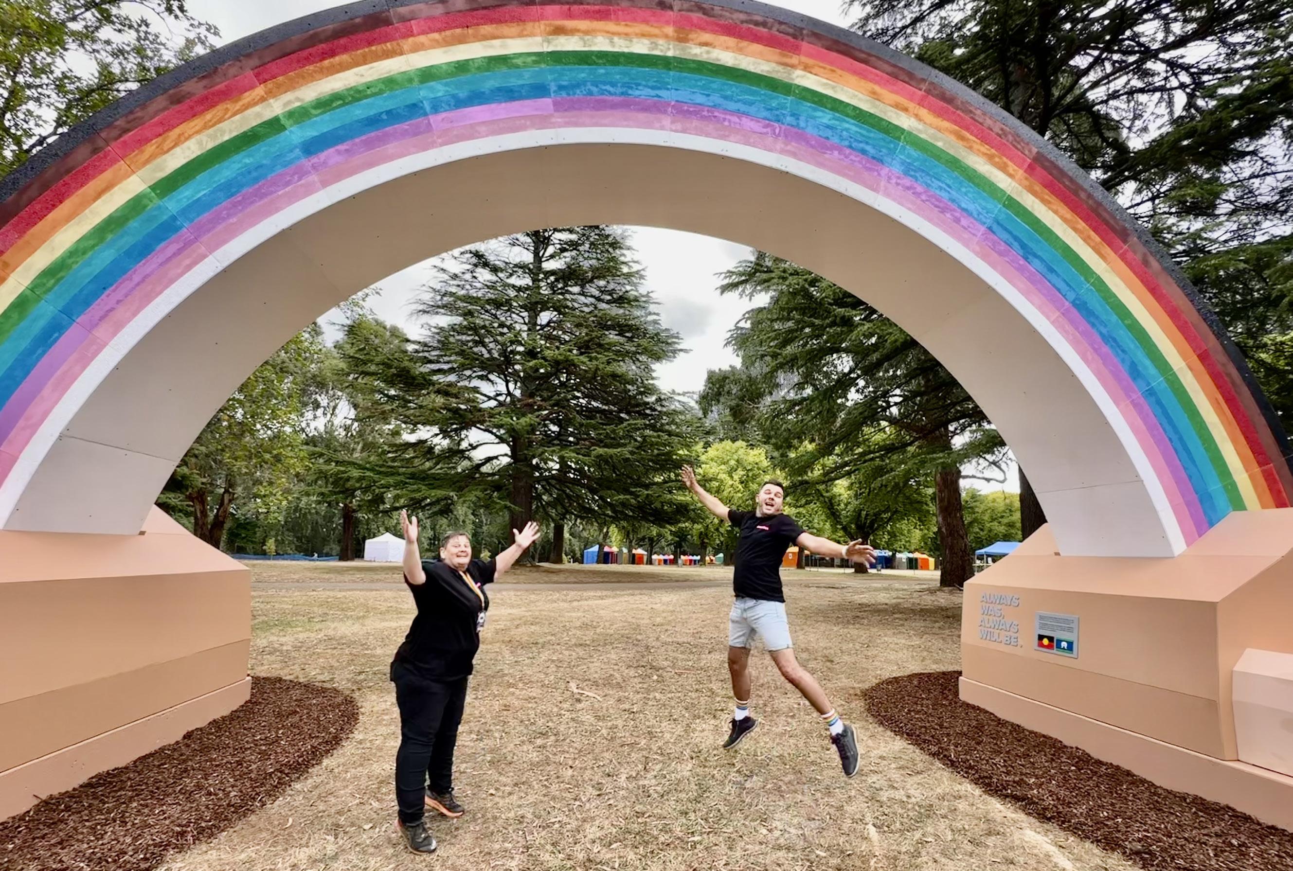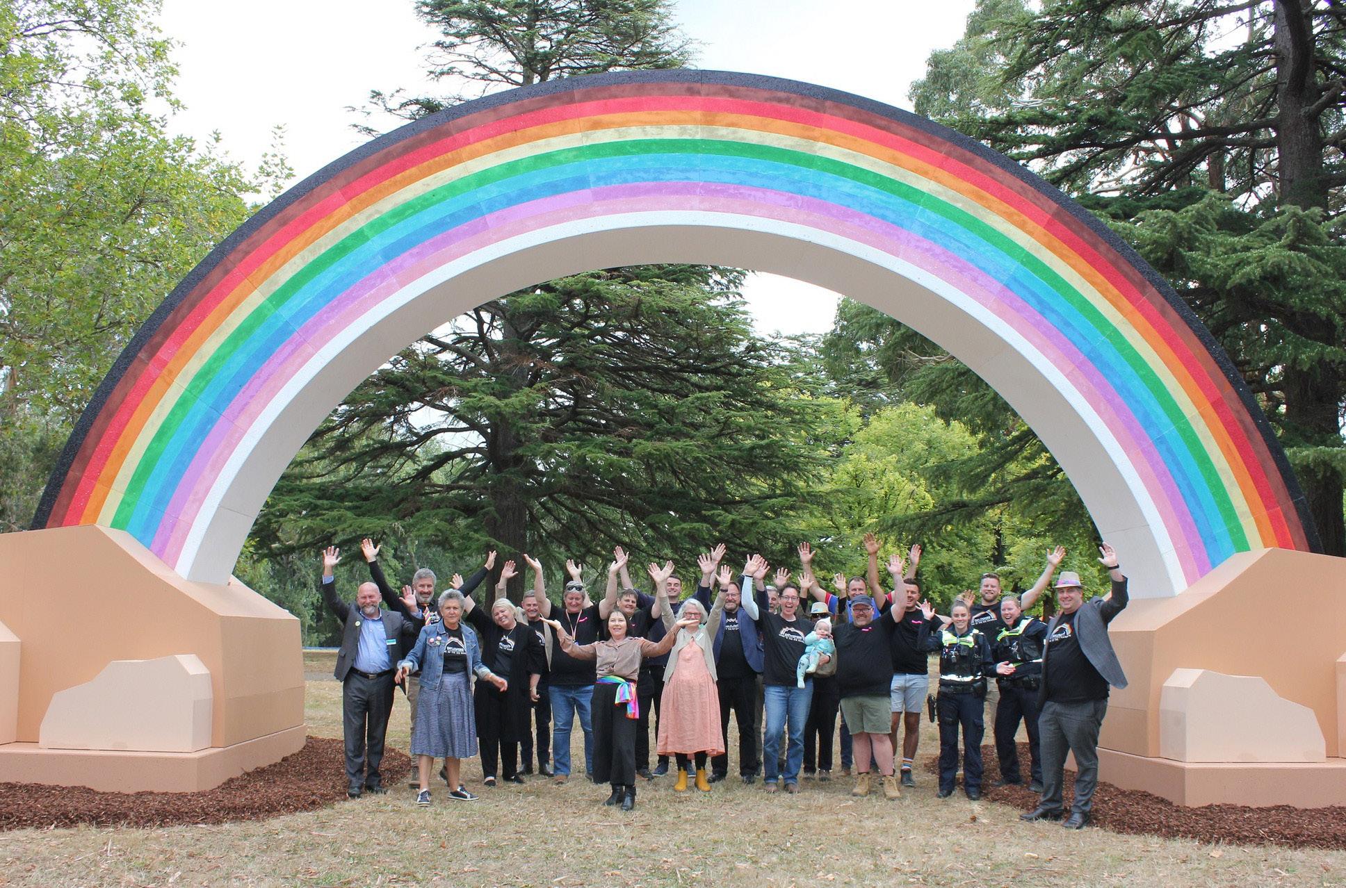 The Big Rainbow has been erected at Victoria Park in Daylesford. Sponsored by Tinder, the rainbow is made of marine grade plywood and is in the colours of the Philadelphia Pride Flag.