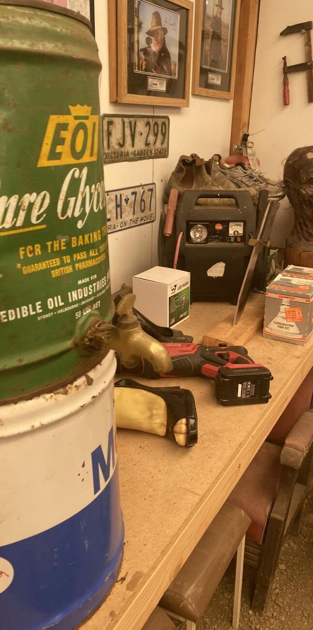 Back home in Yandoit Chris shows his Wolf Creek museum, its props including a charred body, severed limbs and a skull, posters, signed photos and, dominating the space, a sky blue 1977 Ford F250, a replica of one in the film, signed within by Jarratt, and a massive 1978 HX Holden Statesman Caprice, used in the TV series.