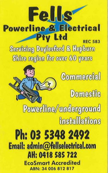 15 Mink Street Daylesford SLEEPERS & EDGING topsoil & compost Mulches AGGREGATES & SCREENINGS SAND FEATURE ROCK MON-FRI: 7.30AM-5PM SAT: 7.30AM2.30PM 1 Market Street ~ ph: 5424 1611 Petrol, oil, swap & go gas, Motorpass, farm produce, farm produce store, ice, milk, soft drinks, take away pies, coffee, confectionery, local honey, etc Rusty junk, secondhand books, old wares .................................................. Monday–Sunday 8aM~6pM TRENTHAM PETROL & ..................................... STUFF •Roller Shutters •Security Doors •Fly Screens • Fly *Conditions apply. SECURITY DOORS MADE TO MEASURE AT FACTORY DIRECT PRICES Phone: 03 5464 7380 or Michael 0422 643 901 Email: sales@onsiteflyscreensballarat.com.au www.onsiteflyscreens.com.au Hepburn Shire & Ballarat FLYSCREENS MEASURED, MADE, AND FITTED ON THE SPOT! FROM $75 00 03 5464 7380 Our advertisers 25 www.tlnews.com.au