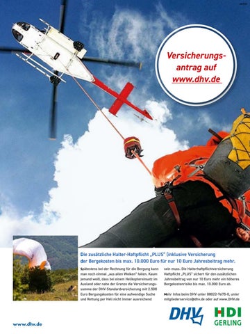 sein muss. Die Halterhaftpflichtversicherung Haftpflicht „PLUS” sichert für den zusätzlichen Jahresbeitrag von nur 10 Euro mehr ein höheres Bergekostenrisiko bis max. 10.000 Euro ab. Mehr Infos beim DHV unter 08022-9675-0, unter