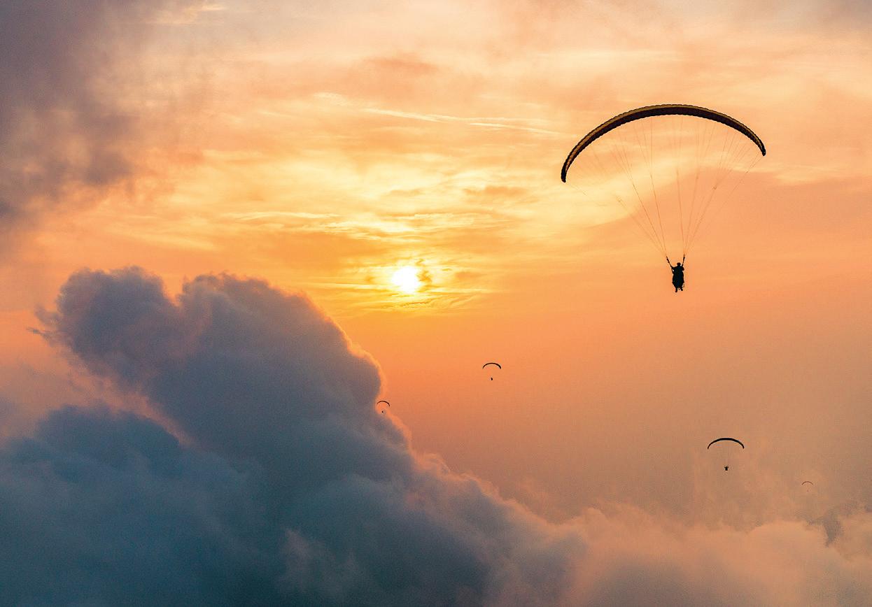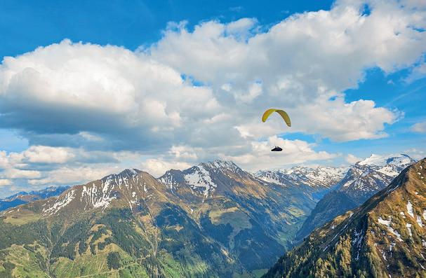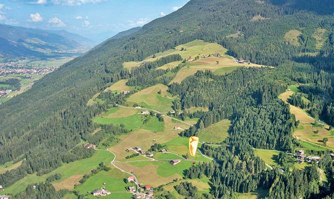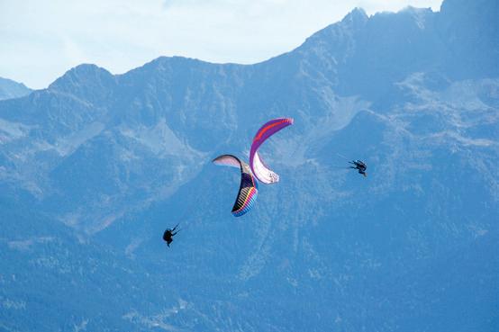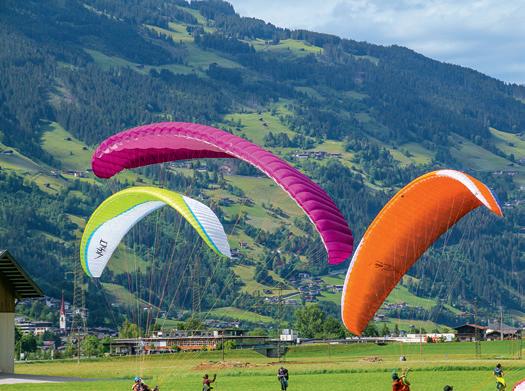 geströmten, von zwei Hochspannungsleitungen umgebenen Wiese ein. Am Ende reichte es leider nicht ganz für die 300 km, aber Burkhard Martens‘ 19 Jahre alten Rekord haben wir mit 289 km deutlich übertroffen. Die vergangenen zehn Stunden waren eine eindrucksvolle gemeinsame Reise durch „unsere“ Alpen! Nicht allein unterwegs zu sein war bei der Thermiksuche immer wieder hilfreich. Außer am Tschirgant, am Venet und am Ende im Pinzgau sind uns während der knapp zehn Stunden keine anderen Gleitschirmflieger begegnet.