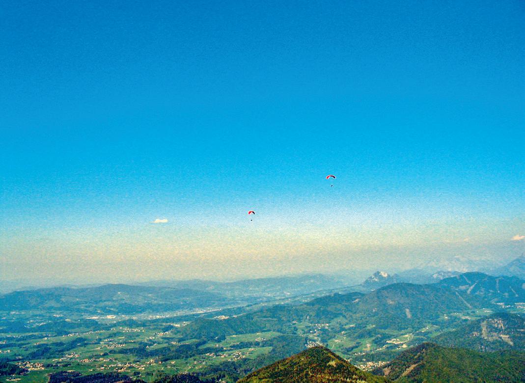 Nur noch 150 Meter über dem Talgrund. Das ist die allerletzte Chance! Wenn es jetzt nicht steigt, dann muss ich mich ganz schnell auf einem der kleinen Wiesenstreifen einparken. Und ja, kaum merklich, aber es steigt! Wird es reichen? Endlich? Wieder eine Schleife knapp am Hang. Und noch eine. Ein paar Meter sind gewonnen. Weiterkämpfen! Vielleicht ziehts diesmal endlich durch. - Jawohl, jetzt kann ich sogar einkreisen. Das zaghafte Stottern des Varios verwandelt sich langsam aber sicher in das lang ersehnte Stakkato. Zwischen meinen Ohren wird daraus ein Jubelgeschrei: Das Kämpfen hat sich gelohnt. Das Ziel, es rückt in greifbare Nähe! Mit jeder Umdrehung hebt sich meine Laune genauso wie mein Blickfeld, während ich mich immer weiter