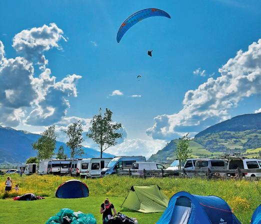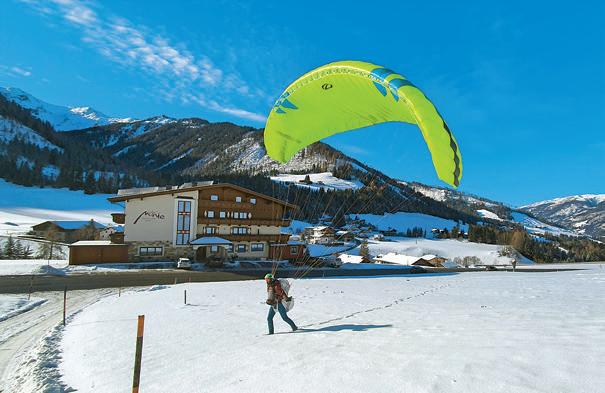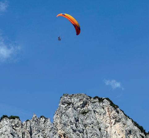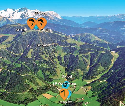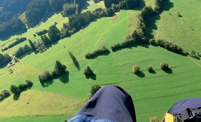 ideal. Sogar Tandemflüge sind hier möglich. Geeignete Landemöglichkeiten findet man entlang der B 111 vor dem Ortseingang Kartitsch. Nach Möglichkeit wählen wir eine gemähte Wiese aus der Luft aus. Zu Fuß geht es dann zurück zum Parkplatz an Bea‘s naturBAR.