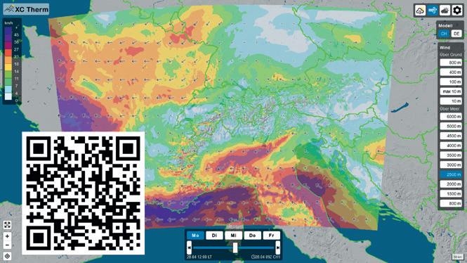 XC Therm bietet neu hochauflösende Prognosen auf Basis der ICON-CH1 und ICON-CH2 Modelle an. Damit können komplexe Prozesse wie Föhn, Talwinde, Cumuluswolken und Gewitter genauer vorhergesagt werden. Mit einer Auflösung von 1 km (Tag 1-2) und 2 km (Tag 3-5) und mit Windvorhersagen in 14 verschiedenen Höhen wird es möglich sein, das Wetter in den Alpen detaillierter als je zuvor abzuschätzen. Dank dieser Kombination bietet XC Therm nun sehr genaueste Wind- und Wettervorhersagen für die Alpen an. Infos: https://xctherm.com/de/fragen#faq-windweather