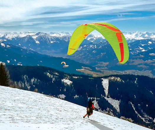 Lawinenwarnstufe 1 (gering) im gesamten Gebiet und beherrschbare Schneehöhen sowie Sonne und ein Hauch von Ostwind am Startplatz. Wir, das sind Norbert, Leo, Manuel und ich. Norbert arbeitet bei der Flugschule Bluesky in Sillian. Er ist dort Tandempilot und Chef der Werkstatt. Leo ist ein Urgestein der Gleitschirmszene. In Osttirol gibt es keine Route, die er nicht schon geflogen ist. Manuel, Fluglehrerassistent und Tandempilot, ist das Technik-Ass bei Bluesky.