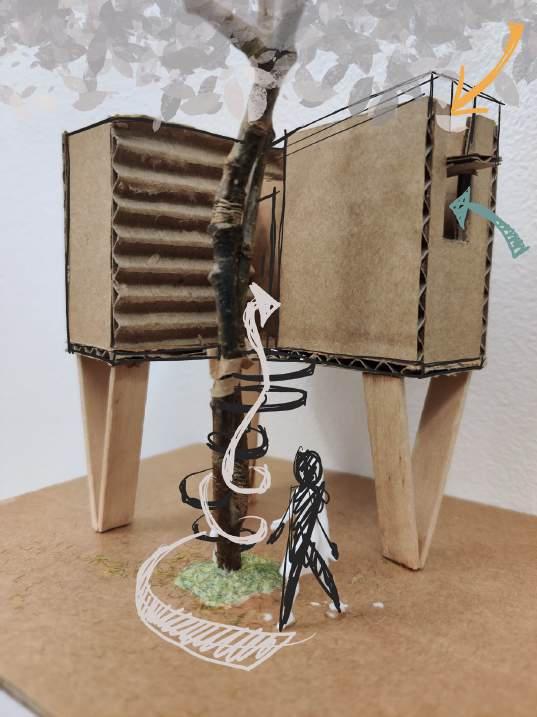 The solitude retreat consists of 5 buildings located around the Dartington estate. The visitors walk through a propsed route that allows them observe flora and fauna present in the Dartington Estate; Connect with nature and themselves while going into the singular studio spaces.