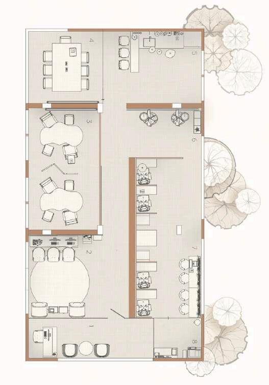 As users circulate throughout the various spaces, the interior evolves from the use of more vernacular materials and forms to modern ones. As the name suggests, this co- work space remembers the collision of times.