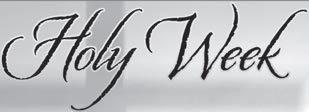 Blessingof Palms, The Passionaccording to St. Matthew&Holy Eucharist April2-6:00pm- Maundy Thursday CommemorationofLastSupper& Strippingofthe Altar April3-12noon&7:00pm- Good Friday The Passionaccording to St. John& Solemn Collects April4-7:00pm-Easter Eve Vigil Lightingof Paschal Candle,Holy Eucharist&bell ringing April5-10:00am-EasterSunday Celebrationofthe Resurrection&Holy Eucharist
