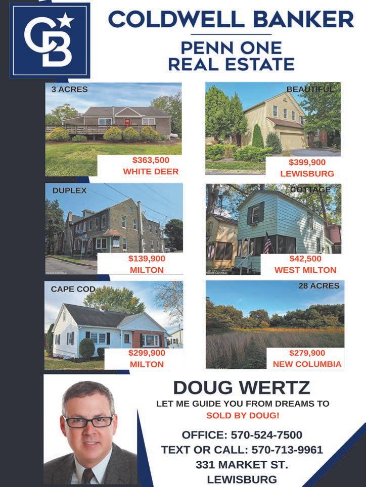 ENJOY STUNNINGVIEWS ENJOY STUNNING VIEWS of theValleyfrom this lovely home atop a hill This estate spans over 3acres &iswithinwalking distance of StateForest Lands.Inside,you’ll find aliving room &adiningareawithapropane stove. The1st floorhas aprimary bed, abath, &alaundry room The well-designedkitchen boastsgranite counters.Includes adetached5-car garage &anadditional shed,a covered porchand deck Call Doug. WhiteDeer$363,500(20-100435U)