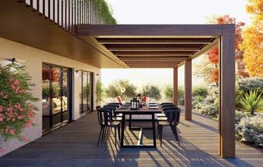 • Bioclimatic. Equipped with adjustable louvers, bioclimatic pergolas are made of maintenance-free aluminum. You can easily modulate sunlight and ventilation according to changing weather conditions.