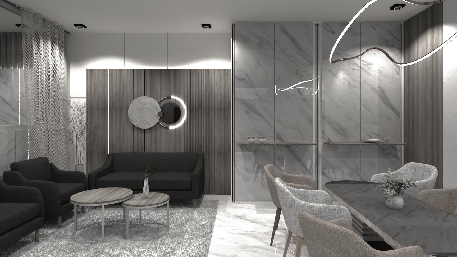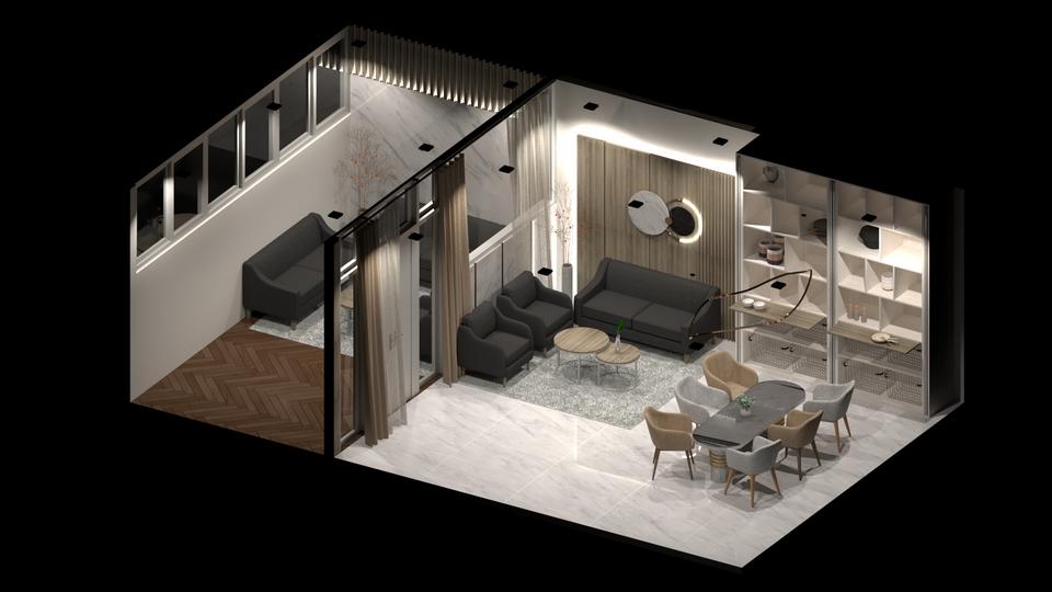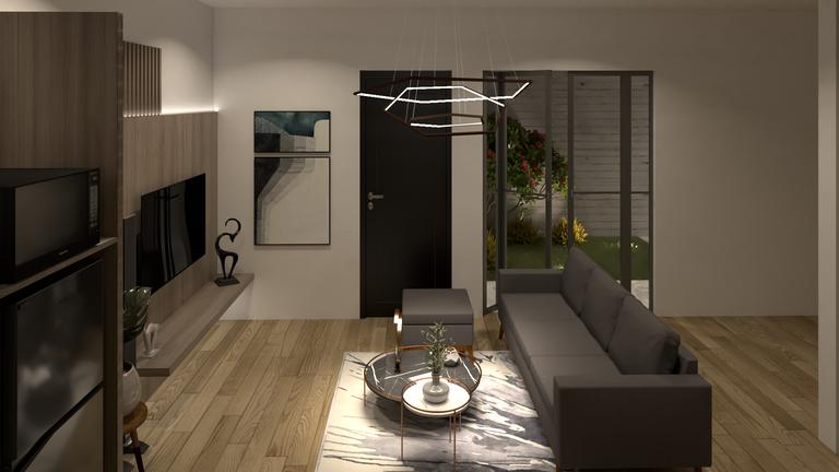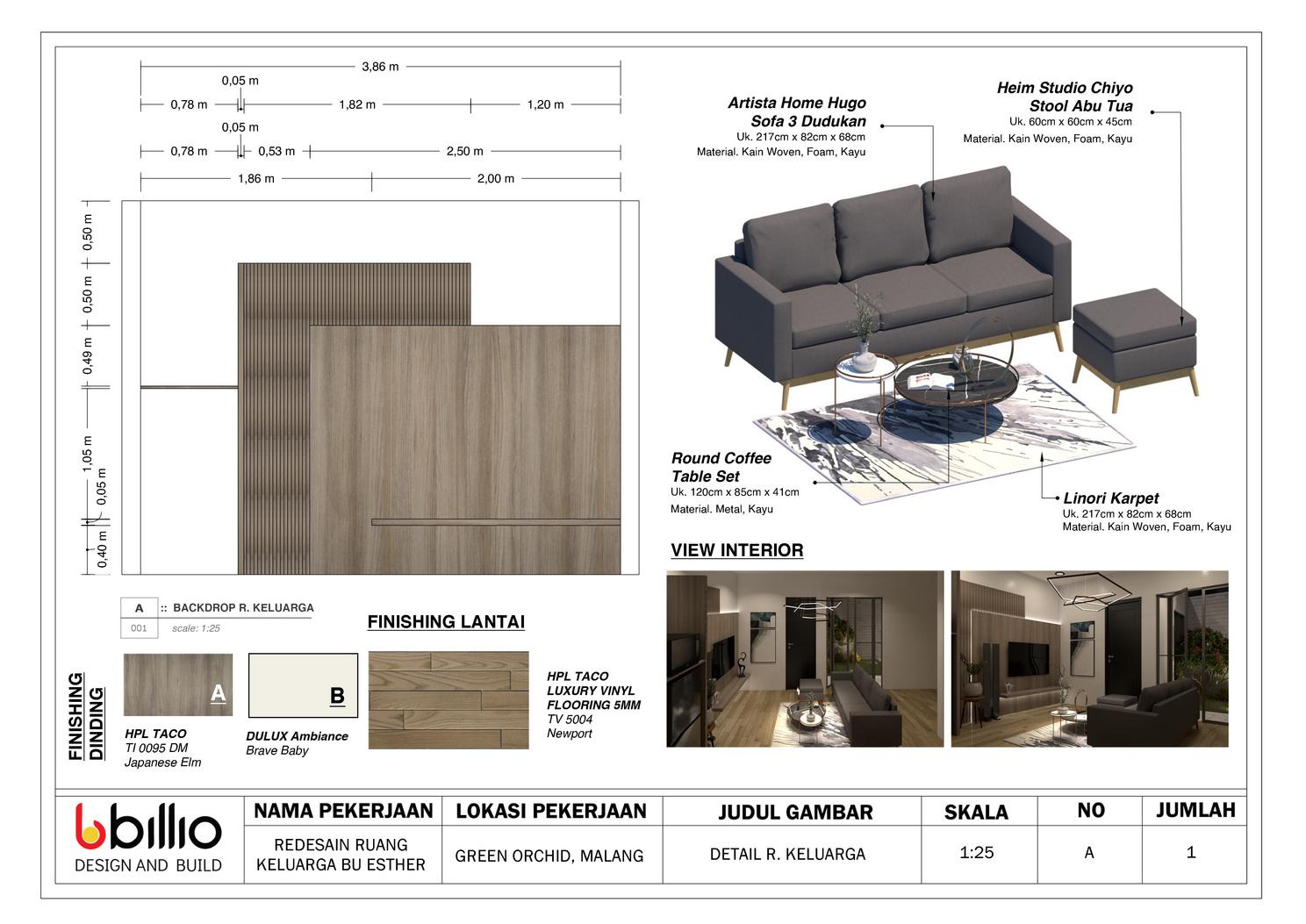 Mengambil konsep minimalis modern. Membuat interior ruang keluarga dengan simpel, ringan, tidak membosankan namun membuat penghuni ruang nyaman.