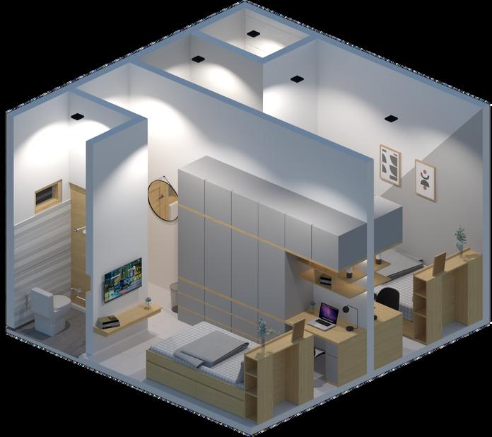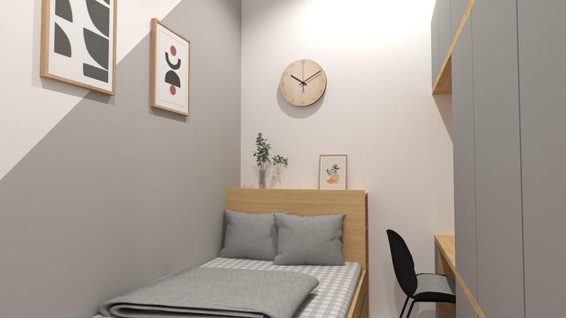 Menggunakan konsep Choco Minimalist Room. Dimana pengguna ingin menciptakan ruang tidur untuk berintirahat dengan nuansa yang hangat namun dengan desain yang minimalis.