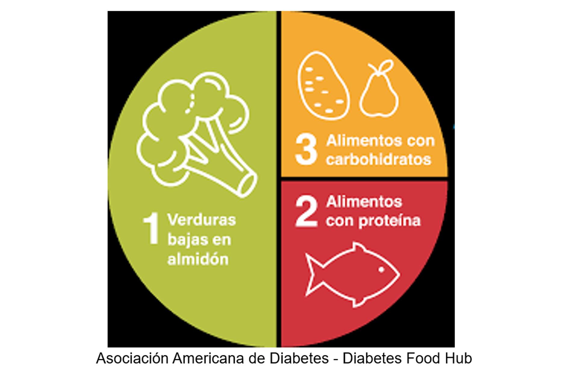 Este te ayuda a estimar carbohidratos visualmente. Divides el plato en partes: mitad verduras sin almidón, un cuarto carbohidratos (como arroz) y un cuarto proteínas. Es práctico cuando no tienes balanza.