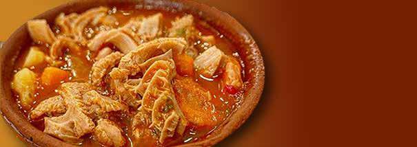 Ingredientes: mondongo 400 g, cebolla 150 g, zanahoria 200 g, morrón rojo 100 g, apio 100 g, tomate fresco 200 g, puré de tomate sin azúcar 200 cc, choclo desgranado 150 g, porotos cocidos 200 g, ajo 10 g, aceite de oliva 20 cc, caldo de vegetales bajo en sodio 1 litro, pimentón dulce 5 g, laurel 1 hoja, perejil fresco picado 20 g, sal y pimienta negra al gusto.