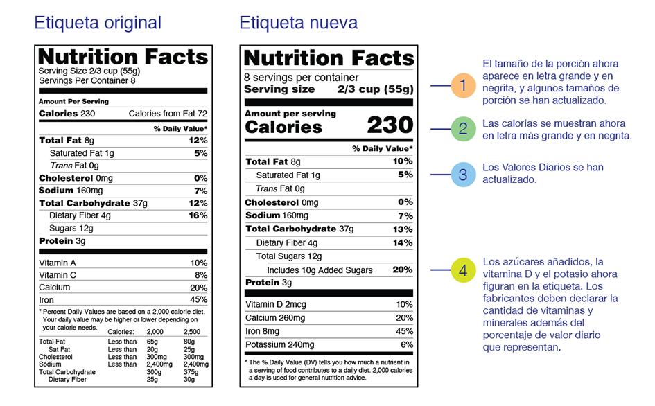 Como resultado de las recientes actualizaciones de la etiqueta de información nutricional, algunos tamaños de las porciones en las etiquetas de los alimentos pueden ser más grandes o más