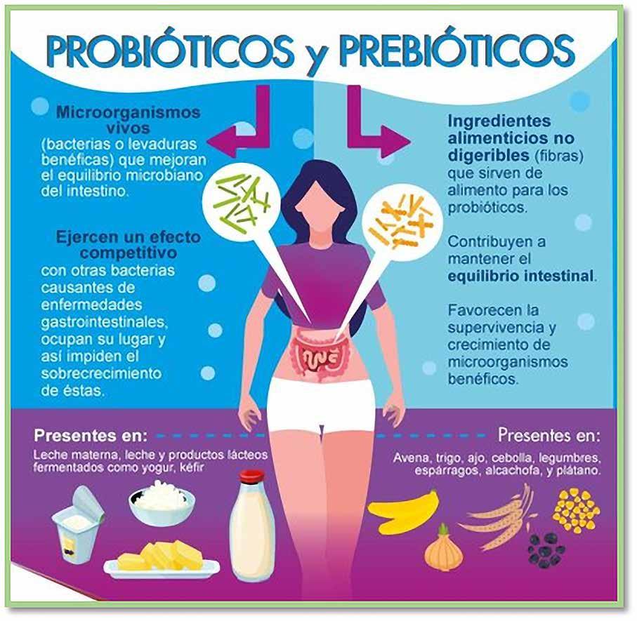 Los probióticos son microorganismos que, al ser administrados en cantidades adecuadas, proporciona beneficios para la salud, suelen estar presentes de forma natural en muchos alimentos fermentados como yogur natural, en otros se adicionan como: quesos, pan de masa madre, suero de mantequilla, etc.