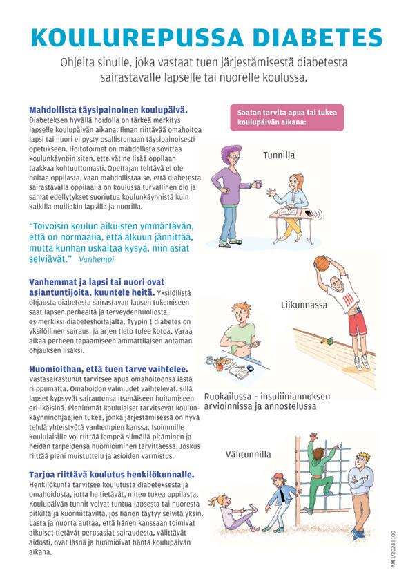 10 asiaa diabeteksesta -esite on tarkoitettu kaikille, jotka kohtaavat tyypin 1 diabetesta sairastavia lapsia koulussa.