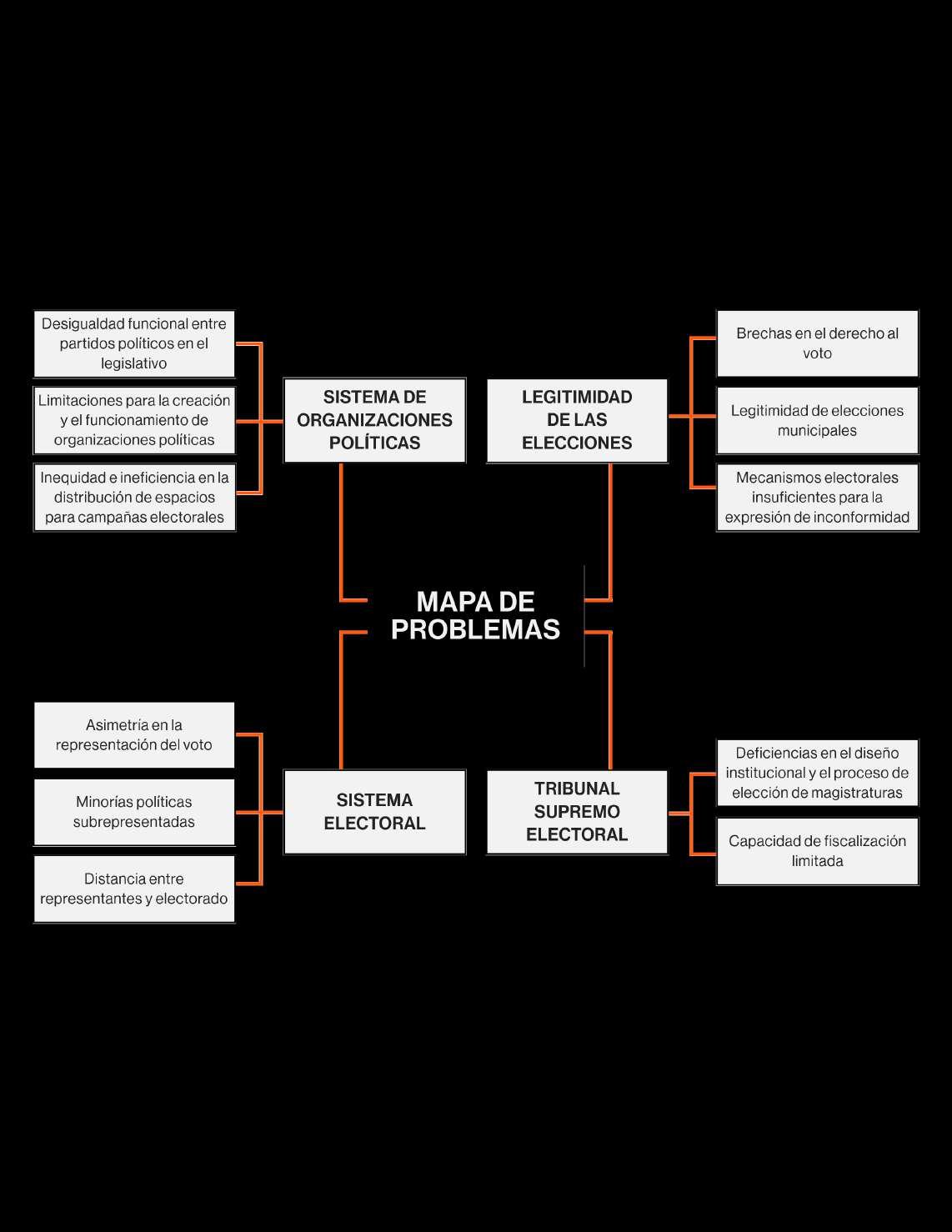 A continuación, se presenta un resumen de los problemas identificados y las recomendaciones de reforma para cada uno. Es importante destacar que Diálogos considera que las reformas deben plantearse desde una perspectiva sistémica, es decir, desde una perspectiva que considere cómo una reforma en un ámbito puede incidir en otros ámbitos, ya que la implementación de reformas aisladas puede tener consecuencias no previstas