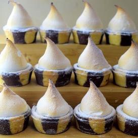 Puff pastry filled with zesty lemon curd and topped with torched Italian meringue with berry compote and double cream.