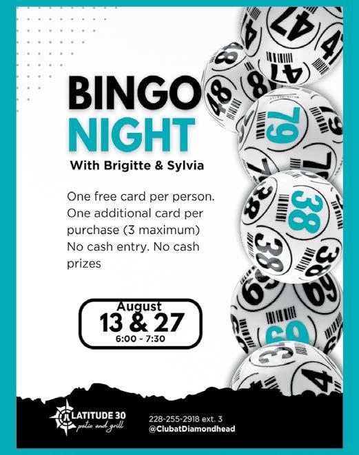 Join us on August 13 and August 27 in Latitude 30 for an exciting evening of Bingo! 6:00 – 7:30