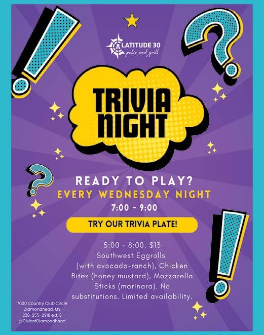With Ronnie Hammons. Test your knowledge and compete with friends every Wednesday night. 7:00 – 9:00 in Latitude 30.
