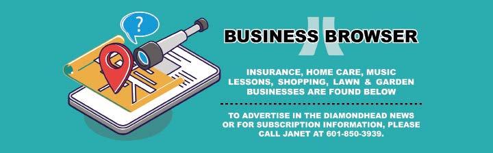 Subscription info: DHPOA Membership 255-1900 The Sea Coast Echo will be responsible for production, printing, advertising and distribution (by mail) of The Diamondhead News. For advertising, call Janet Woolsey at 601-850-3939 or email janet@seacoastecho.com.