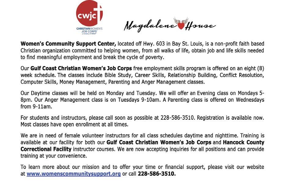 29554 Vic Faye Road, Pass Christian, MS 39571; 228-2552555, jacobswellms@aol.com