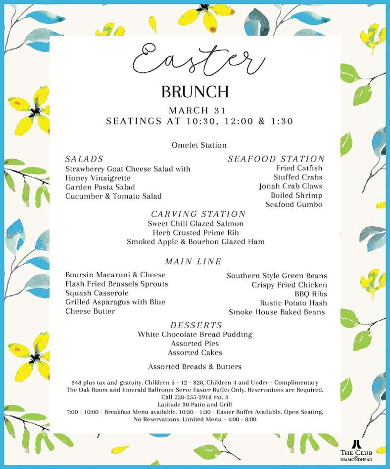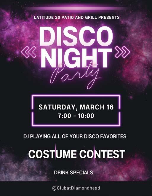 Coming events at the Club include the Easter Sunday Buffet, Latitude 30 3rd Anniversary Party, Good Friday Buffet, Easter Saturday Pre-Fixed Dinner, a Disco Party and more. The new menus for Latitude 30 Patio and Grill and the Oak Room will be rolled out in March.